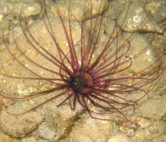 | Family Cerianthidae משפחת צריינטיים זו משפחה של שושנות-ים השוכנת בתוך צינור רירי הנעוץ בחול Unique sea-anemones, that dwell in tubes in the sand. |