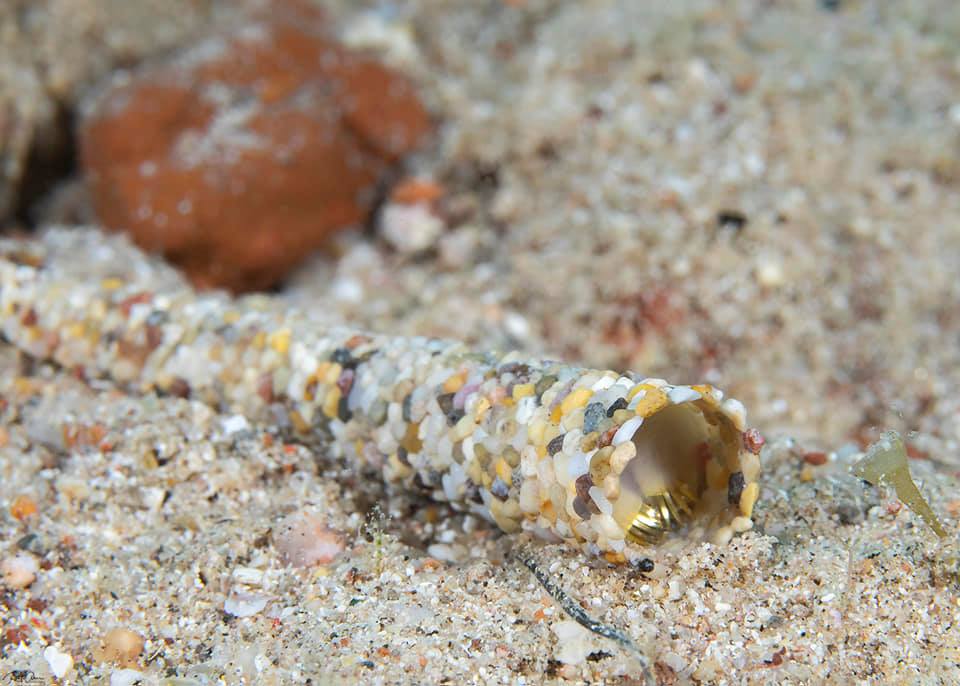 תולעת מסרקית Pectinaria aegypta (Savignyi, 1822) "Ice cream cone worm" תולעים החיות בחול, מכונסות בחרוט העשוי גרגרי חול מודבקים הגוף קצר והראש מצויד בזיפים ישרים היוצרים מעין מסרק. נזונות מסינון החול worms that form conical tubes of sand grains, open at both ends. Their bodies short and stubby. Typical comb-like head setae" |
