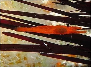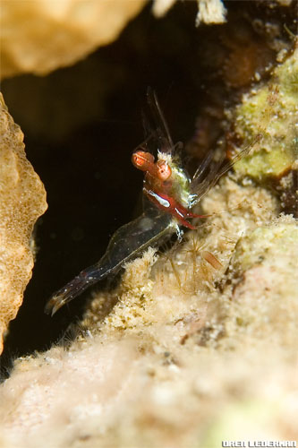 דיירית נקאית Cleaning partner shrimp Urocaridella antonbruuni (Bruce, 1967) חי ומנקה דגים בשונית Lives upon and cleans reef fish at night |