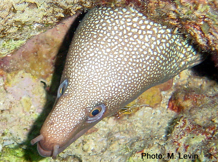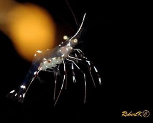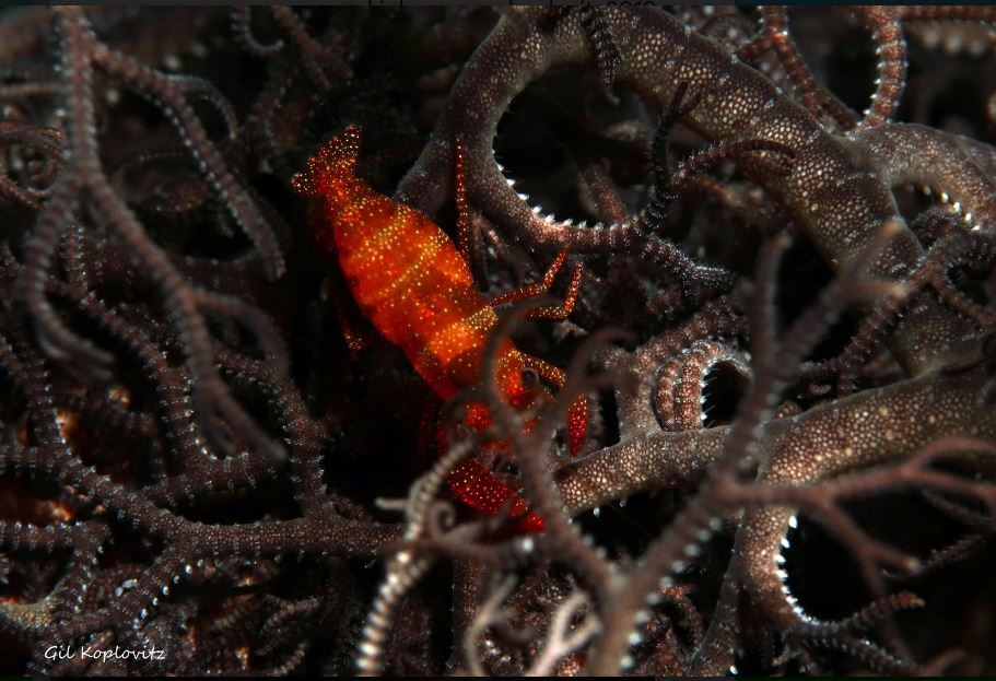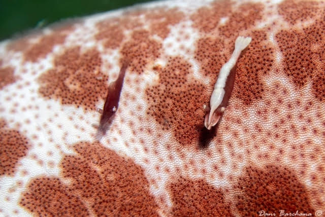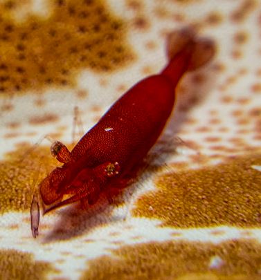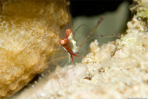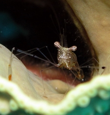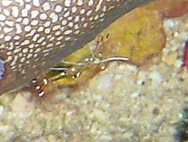Fish cleaning shrimp Periclimenes sp. נראה על דגים גדולים במסתור הלילה שלהם Lives upon fish at their night shelter |