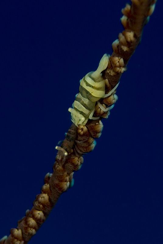 דיירית האוכמנים Black coral shrimp Pontonides unciger Calman, 1939 חי על גבי האלמוג אוכמן Lives upon the black coral Cirripathes |