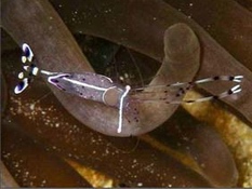 דיירית הדורה Ornate partner shrimp Actinimenes ornatus Bruce, 1969 חי על גבי שושנות-ים גדולות Lives upon large sea-anemones |