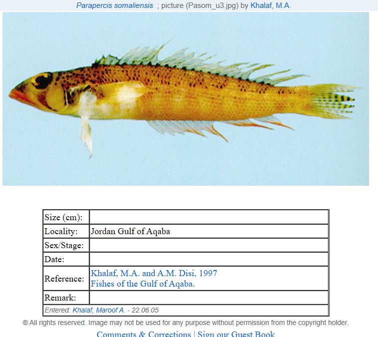 ![]() Parapercis somaliensis Schultz, 1968 |