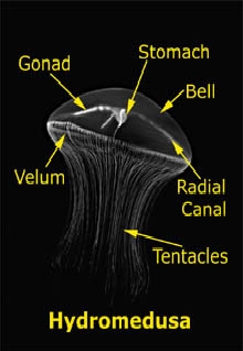Hydromedusa - body plan הידרומדוזה ומדוזת סוכך השוואת מבנה הגוף