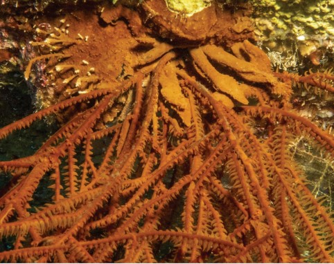 | Two specimens, showing cirri at action ; right-colony of Antipathes, black corals (Antipatharia) at Eilat |