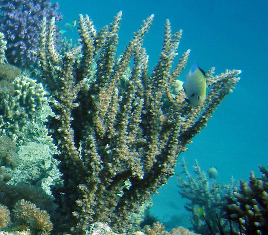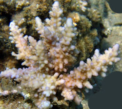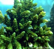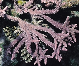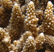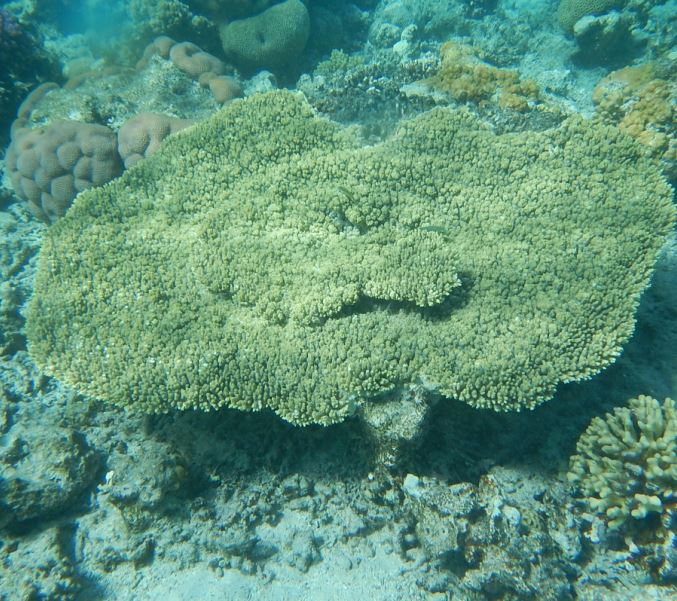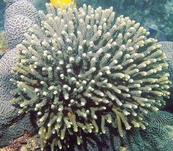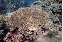 שיטית השולחן Acropora lamarki Veron, 2000 Possibly also: A. hyacinthus (Dana, 1846) קב' 30. אקס' גדולים מרדיאלים, ענפי קצה עדינים יוצר משטח קומות. אנדמי לים סוף ומערב אוק' הודי Accepted by WoRMS |