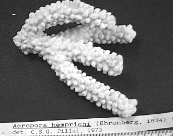 שיטית הפטמות Acropora hemprichii (Ehrenberg, 1834) קב' 3. מושבה רבת ענפים. אקס' בולטים, ורדיאליים אחידים בצורה וגודל ים סוף ומערב אוק' הודי Accepted by WoRMS |