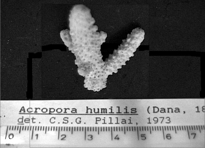 שיטית מאוצבעת Acropora humilis (Milne Edwards & Haime, 1860) קב' 21 ענפים קצרים, אקסיאלים בולטים, סידור קומפקטי של רדיאליים אוק' הודי-פציפי Accepted by WoRMS |