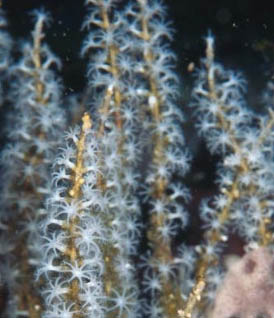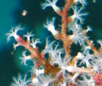 אַלָה רכּה Apparently Carijoa riisei פוליפים בהירים היושבים על גבעולים קצרים, המתחברים ביניהם בגבעול זוחל - סטולון. מושבות קטנות הגדלות על מזחים ומצופים. זוהתה במזח צף של "ריף הדולפינים" באילת. אלמוג פולש . Small colonies of white polyps, growing on small stems. Identified on a floating jetty of Eilat's "Dolphin Reef" Known as an invasive species in many countries. מופץ בעולם הטרופי באמצעות ספינות - לחץ כאן |