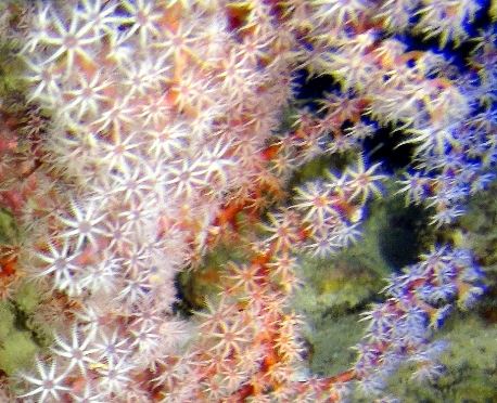 אלמוג צבעוני בגוונים שונים. צבע הפוליפים ורוד,