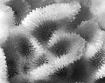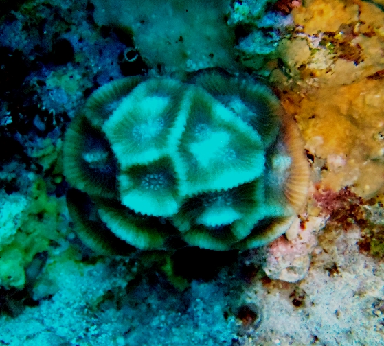 האנכיות (עטרת עמודונים - פאליפורמיות) במרכז הגביע בין המחיצות הפנימיות שניכרים גם על האלמוג החי. גם כאן יש