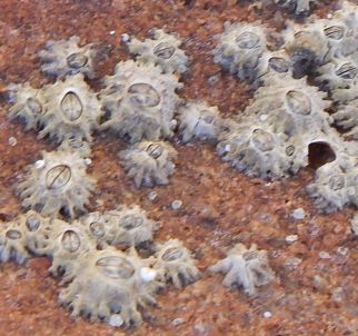 בלוטן ענק Tetraclita rufotincta Pilsbry, 1916 מכסים את סלעי החוף בתחום הכרית בעבור עליהם הגלים יוצאות רגלי הסינון החוצה WoRMS Accepted |