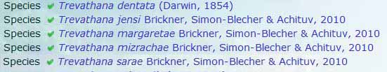 נמצא על ידי חוקר בשם טוטון באריתריאה שהייתה במלחמה באותה עת - 1940 Oxynaspis ופירסמו בשם שונה באילת נמצא על ספינה טבועה על ידי ובסיוע של הבאים: . Brickner, I. Koplovitz, G. Simon-Blecher, N & Y. Achituv המאמר בשלמותו פורסם בפורמט דיגיטלי https://www.tandfonline.com/doi/full/10.1080/00222933.2022.2117108 Originally described by C. Darwin and publishes by Totton during WW2 1940 in Erithrean waters. Redesribed under present name in 2022 by Brickner, I. Koplovitz, G. Simon-Blecher, N & Y. Achituv |