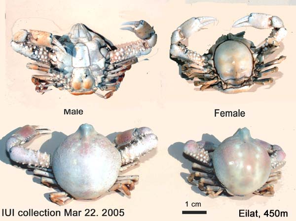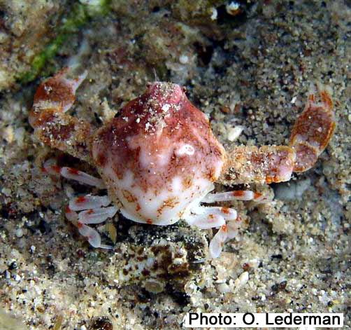 סרטנים קצרי בטן בעלי ראש-חזה מחודד בקדמתו, החיים ומסתתרים בקרקע Crabs living in sandy bottom or among corals |