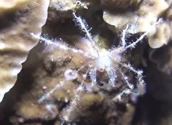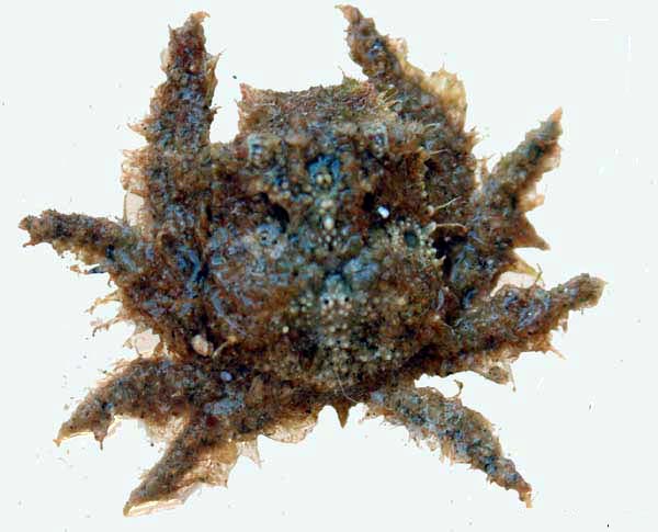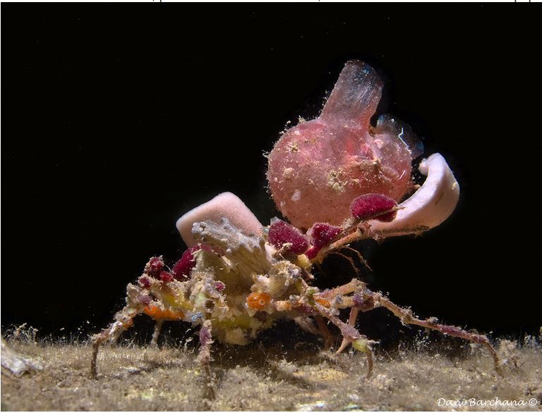 עכובית ריסנית מכוסה בספוג המכיל פוליפים של המדוזה Eyelash spider crab (H. Milne Edwards, 1834) Photo: J. Poupin (IP) I. Ben-Tov (Eilat) |