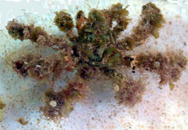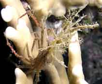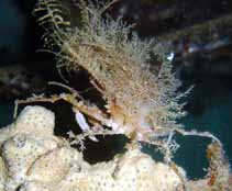 עכובית נושאת הידרוזואה, אצות או אלמוג אוכמן Algae, black corals or hydroid carrying spined crab Naxioides sp. Photo: M. Levin, I. Ben-Tov (Eilat), Y. Liberman |