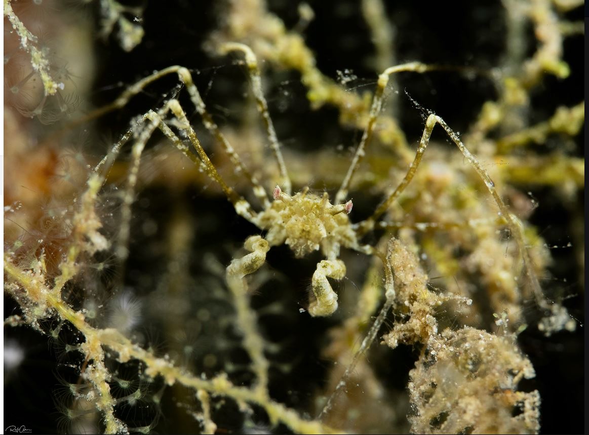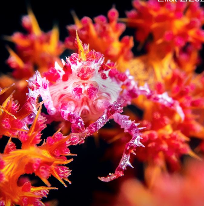 | שני פרטים של עכובית לא ידועה אולי זו שלמעלה Unknown Spider crab Achaeus cf. spinosus סרטן דק רגל קיצוני Camouflaged spider crab Photo: R. Amar (Eilat 2020) |