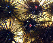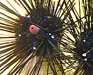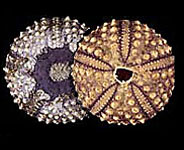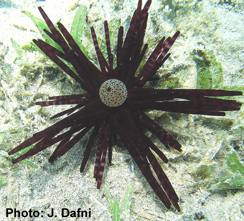 מושלמת. כל המינים מצויידים באבר לעיסה הקרוי "פנס אריסטו", הכולל מערכת לסתות שחמש שיניים בקצותם (ראה ציור). בני סידרה זו הם בעלי קוצים חדים, שחורים לרוב, ושלד גמיש למחצה. קוציהם חדים וארסיים. Included in this subclass are all round or oval sea urchins, with redial or elipsoid symmetry. They are equipped with "Aristotles' lantern", composed of five jaws, with teeth protruding in their lower side. They all have a semirigid skeleton (test), and carry spined, long or short, some toxic. In the order Aulodonta are included long and hollow spines, some with 2 types, long or shorter primary spines, and very sharp secondary spines. Coloration differs among the species. Juveniles are brighter colored, and show dark/light bands on the spines |