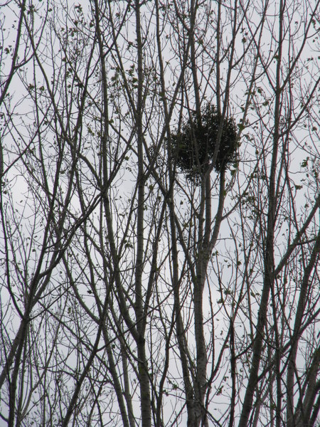 Mistletoe growing on a poplar tree דבקון לבן (טפיל) על עץ צפצפה |