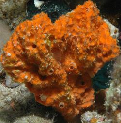 שתופן Mycale fistulifera (Row, 1911) Eilat Symbiosis with the Jellyfish Nausithoe |